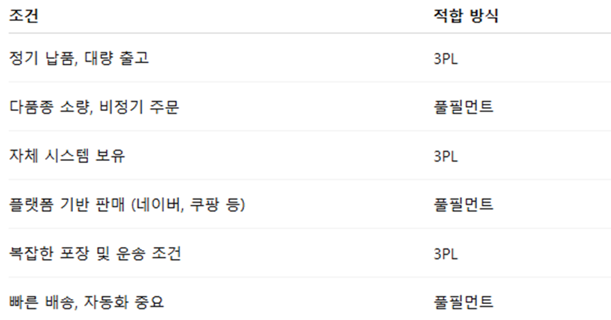 3PL은 유통 채널이 복수이거나 기업 납품 중심인 경우 유리합니다.