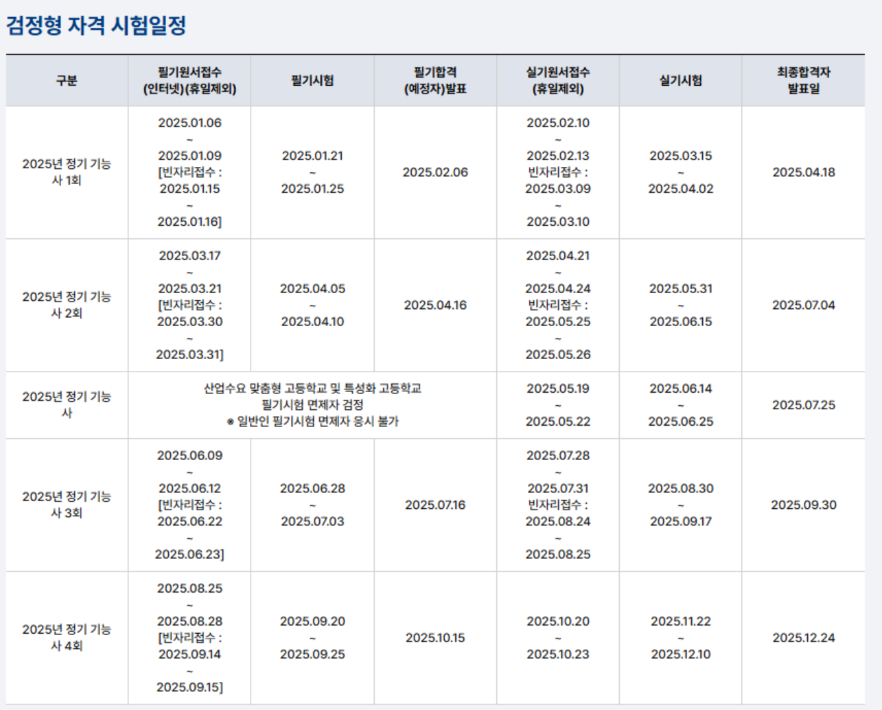 👉 TIP: 실기 원서접수는 빈자리 접수 기간을 포함하므로 접수 마감일을 절대 놓치지 마세요.